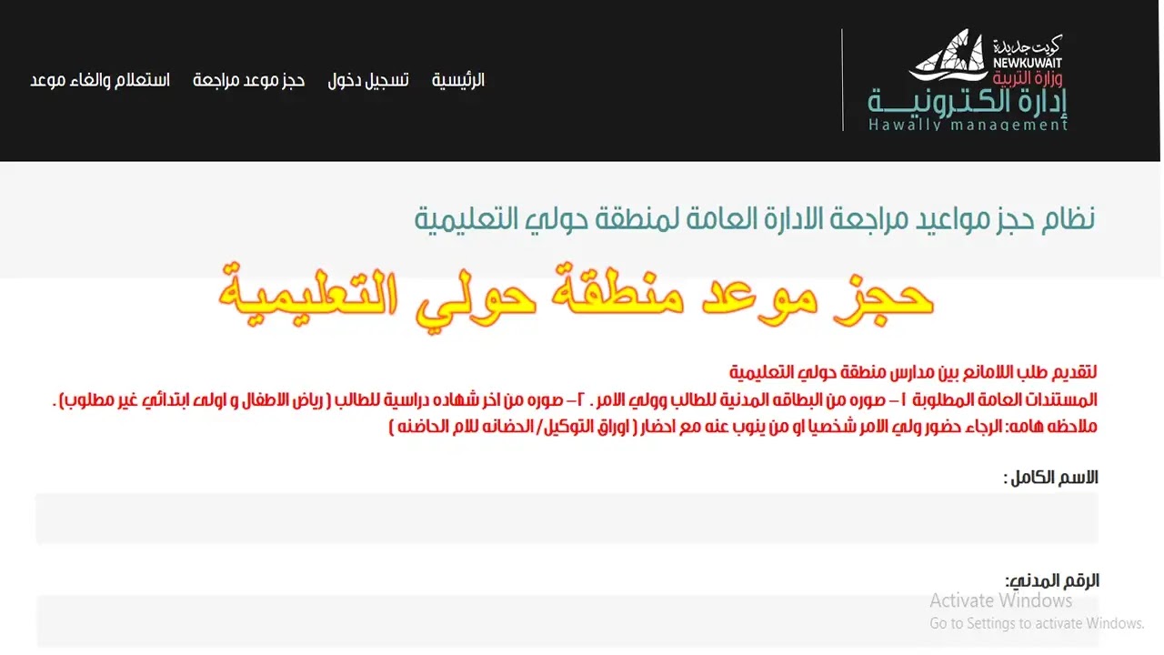 رابط حجز موعد منطقة مبارك الكبير التعليمية